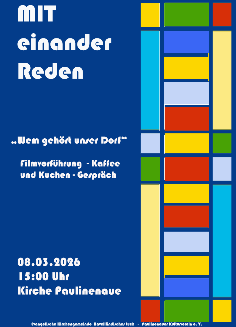 Unsere Internetseite wendet sich an Einheimische und Ortsfremde gleichermaßen. Wenn Du selbst etwas zur Veröffentlichung vorschlagen möchtest, schreib an kulturverein@paulinenaue.info.
