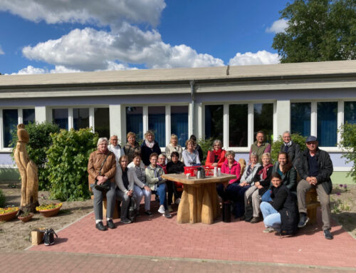 Dass die Knauers auch mehr als 50 Jahre nach dem Ende ihrer kühnen Unternehmung hoch in Ehren stehen, zeigte Dr. Christian Ziegener, der für den Berliner Verein „Hall of Fame“ des Deutschen Trabrennsports am Grab der Knauers einen Kranz niederlegte. Nach der heutigen Feierstunde setzte sich ein Zug von Radlerinnen und Radlern vom Friedhof aus in entgegengesetzte Richtung in Bewegung. Es ging zum „Lindenhof“. Hier lud der Kulturverein noch zum Kaffeetrinken am historischen Ort.
