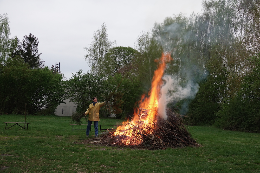 Konkret hieß das, dass es Dieter Czerniak am Sonnabend noch schwer gehabt hatte, nach einem verregneten Tag das Osterfeuer auf dem Großen Sportplatz so recht zu entfachen. Selbst mit untergeschobenem Strohballen brauchte es eine Weile, bis endlich die Flammen emporschossen. Die Bänke wurden näher herangerückt. Es war nicht nur nass, es war auch kalt.