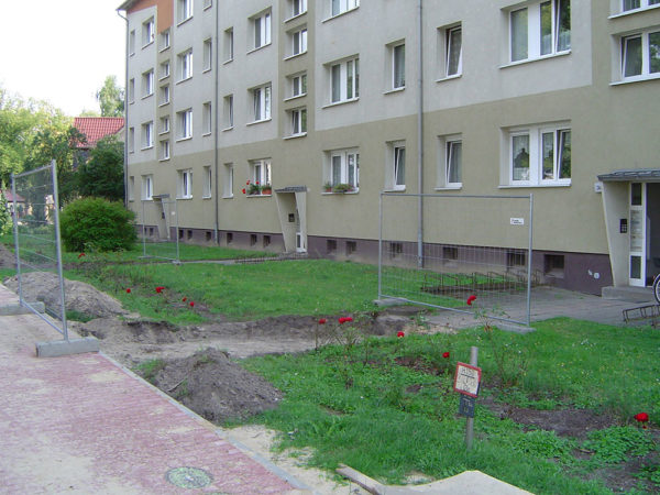 Gegenüber der Kita Paulinchen, wo heute die aktuellen Vorgänge sicherlich Attraktion gewesen sind. Foto: E. Schwarz, 2008.