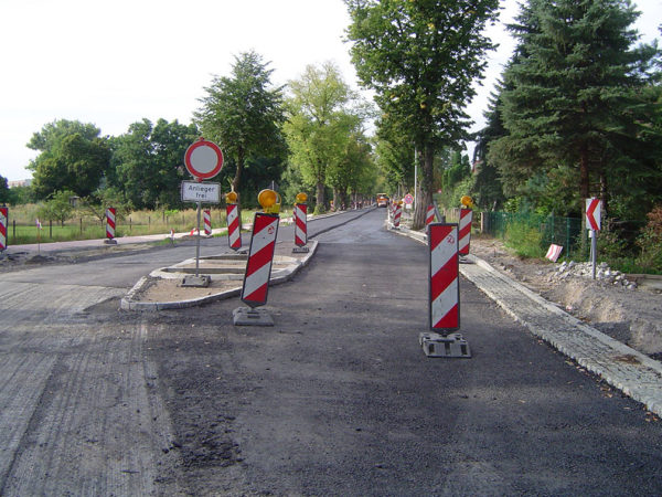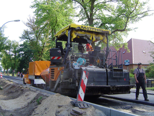 18.08.2008. Nach wochenlanger Bauphase erhält die Paulinenauer Bahnhofstraße nun ein ansehnliches Asphaltkleid, das in Schichten aufgetragen wird. Eberhard Schwarz gibt mit der Kamera eine Momentaufnahme der Situation am Montag, dem 18.08.2008.
