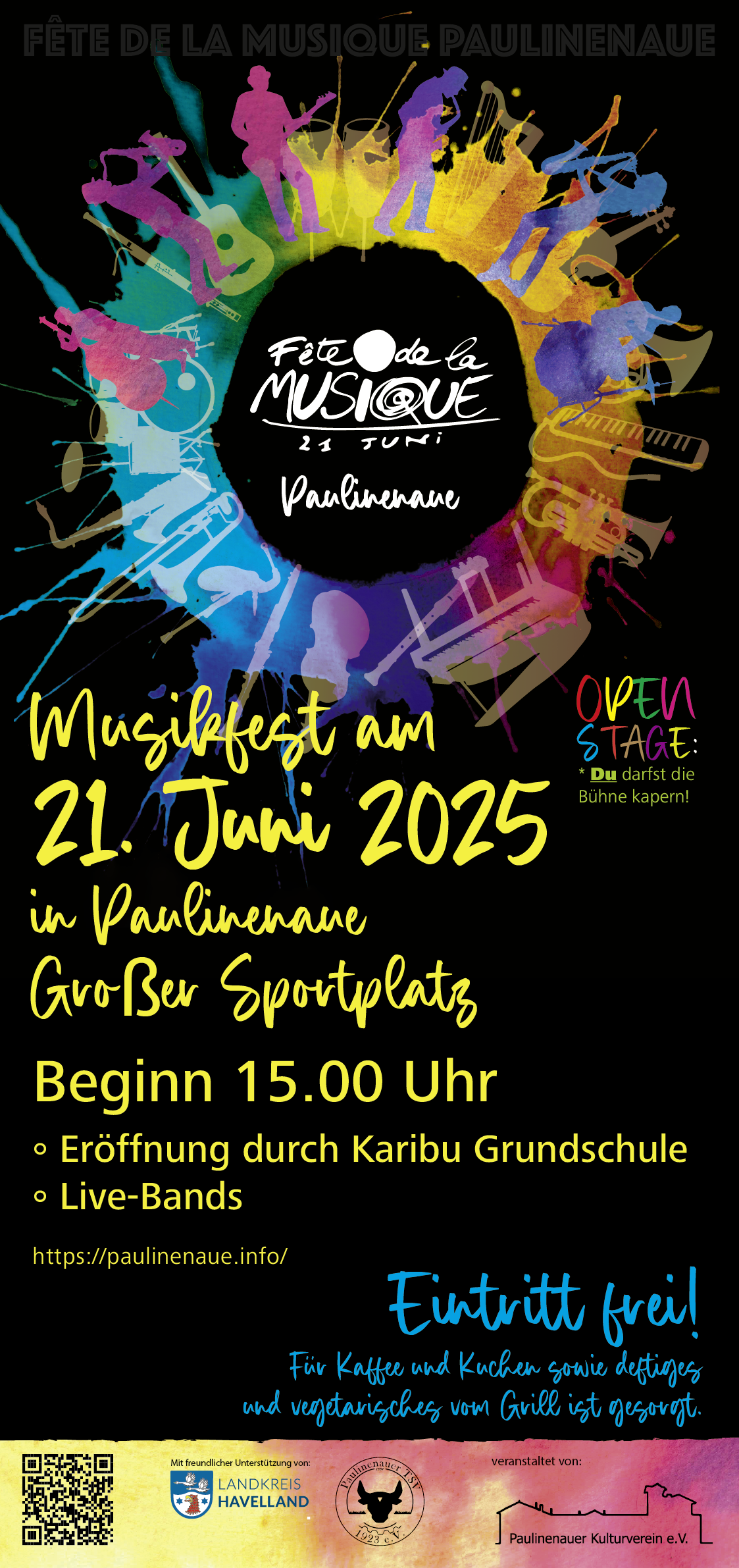 Einige Paulinenauer Kumpels hatten schon seit einigen Jahren die Idee, die Fête de la Musique auch nach Paulinenaue zu holen! Dieses Jahr darf nun schon zum zweiten Mal getanzt und geschwooft werden – in Paulinenaue aber auch in Friesack und in Brieselang!