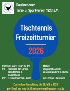 26-03-28 TT-Turnier Von Eckhard Vierjahn|2026-02-12T07:47:16+01:0012. Februar 2026|0 Kommentare Teilen Sie diesen Artikel! FacebookTwitterLinkedInWhatsAppXingE-Mail Über den Autor: Eckhard Vierjahn Hinterlasse einen Kommentar Antwort abbrechenKommentar Time limit is exhausted. Please reload CAPTCHA. sieben + = zwölf Δ Diese Website verwendet Akismet, um Spam zu reduzieren. Erfahre, wie deine Kommentardaten verarbeitet werden.