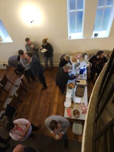 Für das leibliche Wohl war wieder bestens gesorgt: Die Pauerfrauen und die Frauen der Kirchengemeinde bewirteten die Gäste mit selbstgebackenem Kuchen, warmen und kalten Getränken sowie einer kräftigen Kartoffelsuppe mit Würstchen. Gerade an diesem ungemütlichen Novembernachmittag wurden diese Köstlichkeiten dankbar angenommen und trugen zu einer warmen, gastfreundlichen Stimmung bei.