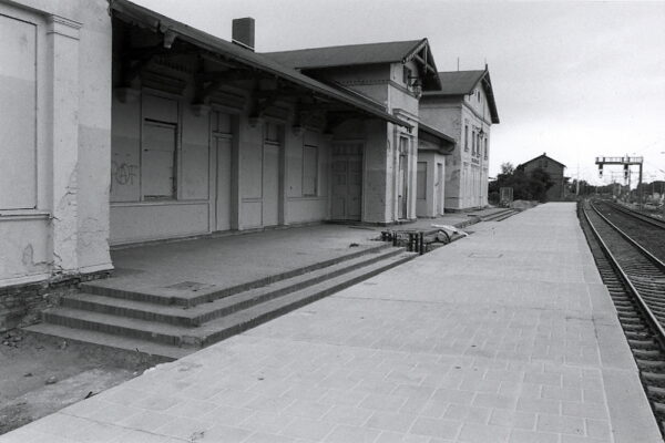 10.08.2003. Am Bahnsteig des Paulinenauer Bahnhofes wird dieser Tage eine breite Plattform verlegt. Ein Sicherheitszaun entsteht hier zum Schutz der Wartenden vor den bald wesentlich schneller durchfahrenden Zügen. Der Zaun wird Durchgänge zum Betreten der Regionalbahnen erhalten. Die hochmoderne Anlage ist bundesweit ein Novum.