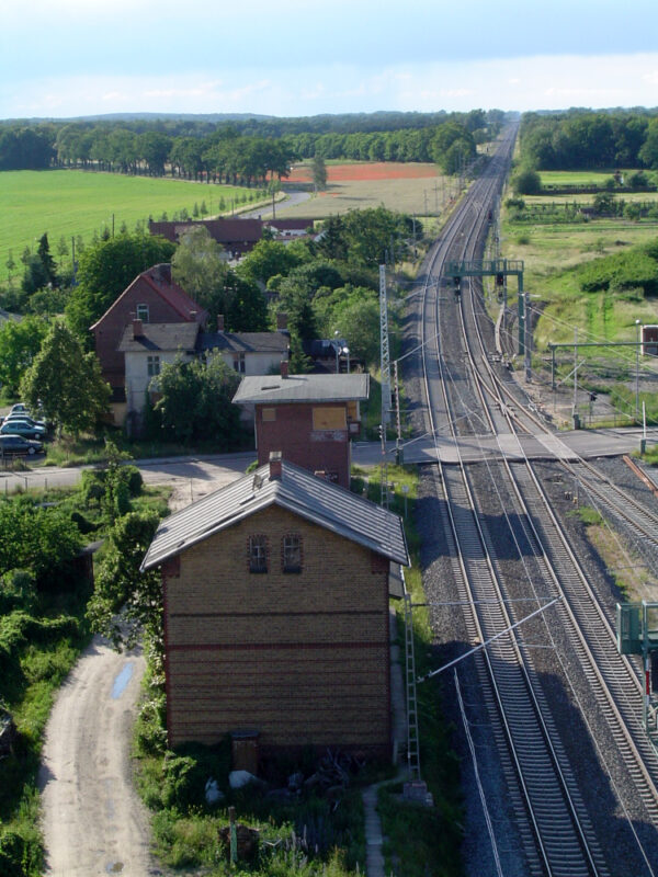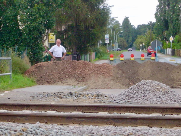 Seit 1848 existierte der Bahnübergang an der Ruppiner Straße. Damals verpflichtete sich die Berlin-Hamburger Eisenbahngesellschaft, für den Paulinenauer Gutsherrn „eine Überfahrt resp. Trift über die Bahn auf der westlichen Seite des Bahnhofes“ zu errichten. Foto: J. Scholz, 2004
